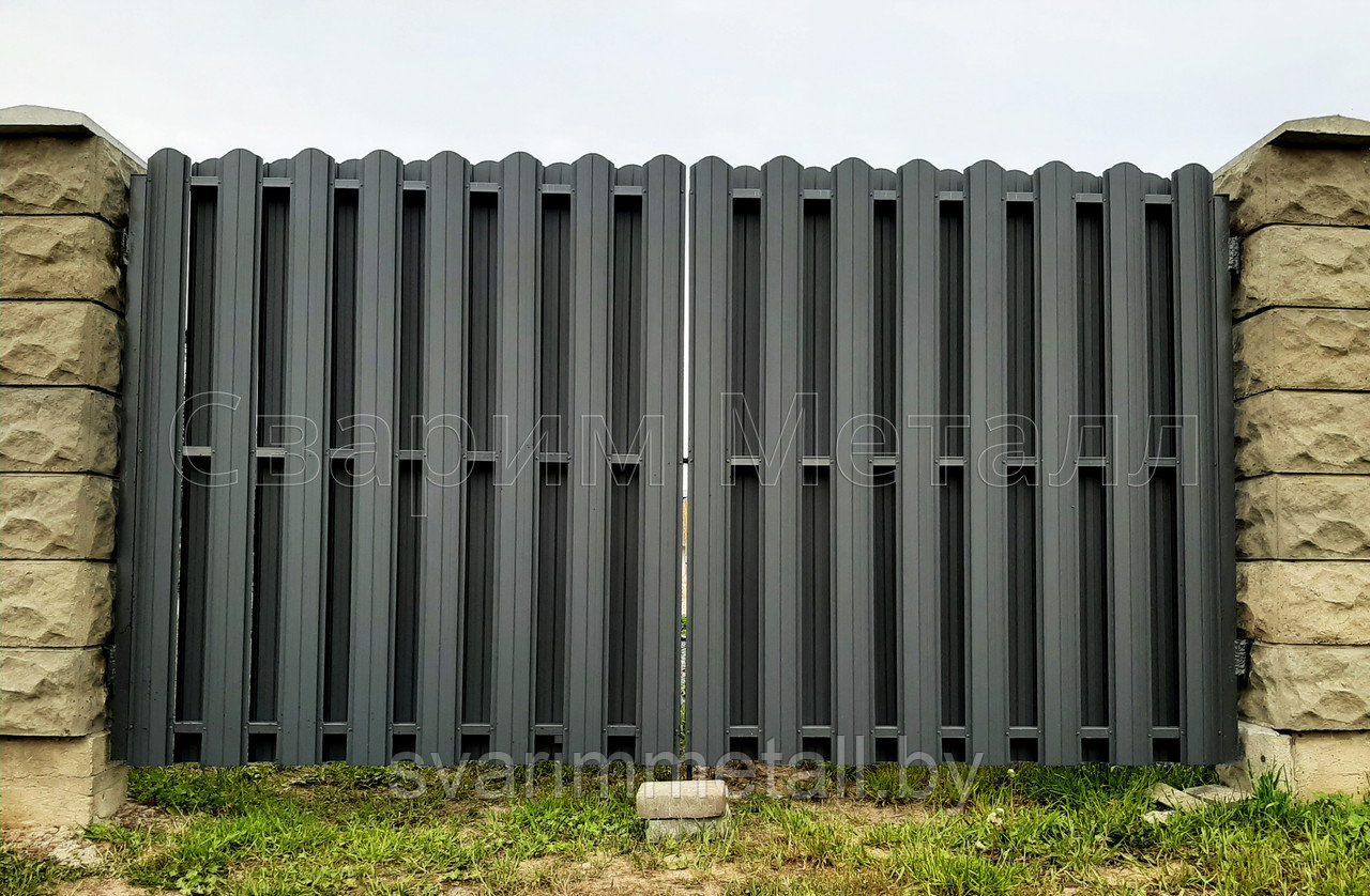 • Распашные ворота, из евроштакетника, черный, фото 3