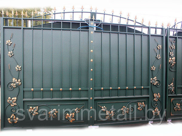 • Распашные ворота, сварные, с элементами ковки (с ковкой), серый, фото 9