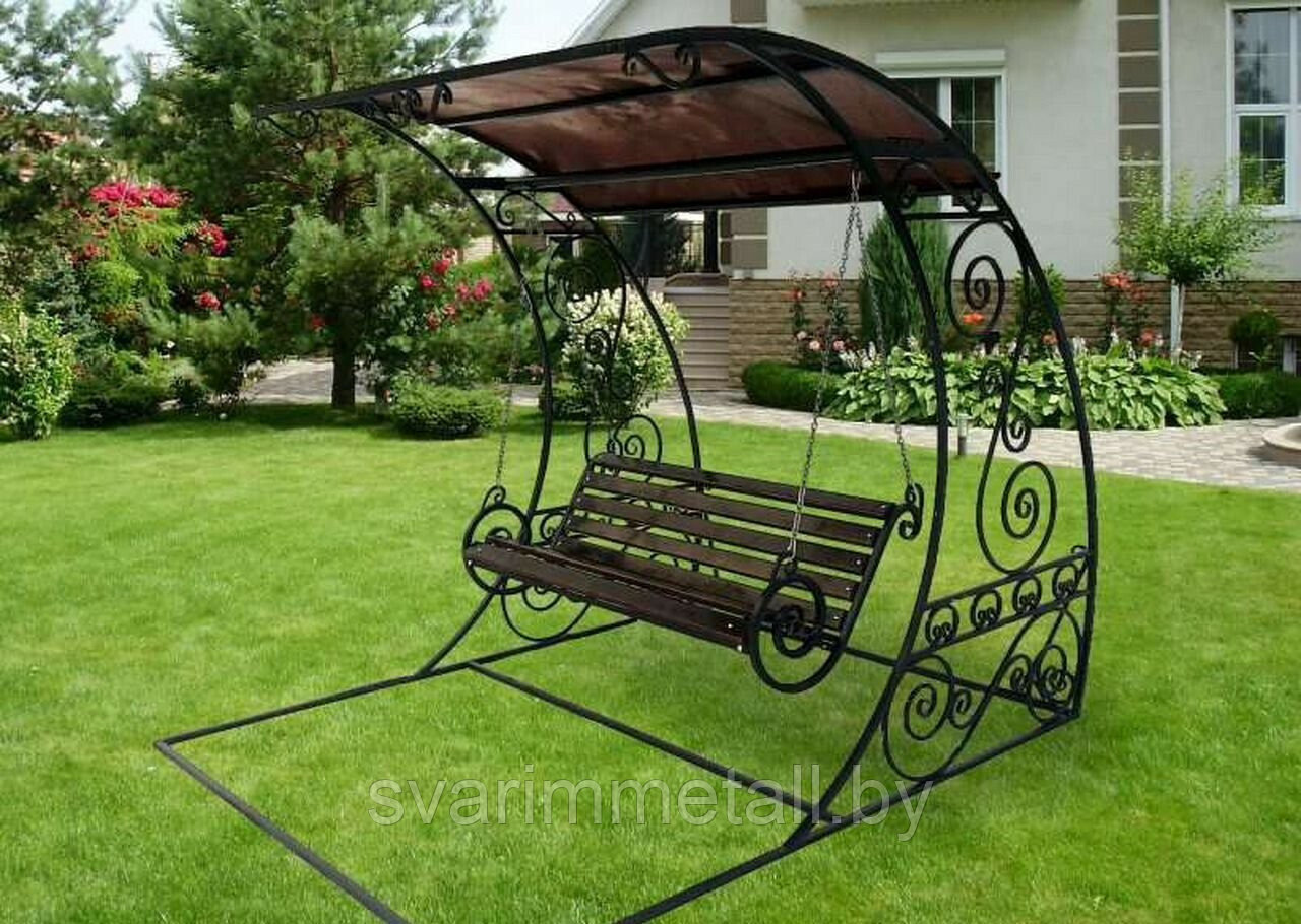 • Садовые качели, из металла, с крышей из поликарбоната, с элементами ковки (с ковкой), черный, фото 8