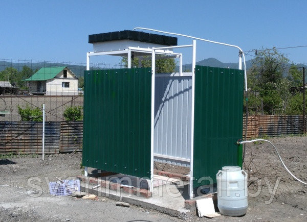 Летний душ (дачный, садовый), из профлиста (профнастила), с раздевалкой, зеленый